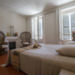 Schlafzimmer mit “grand lit” und Garderobe.