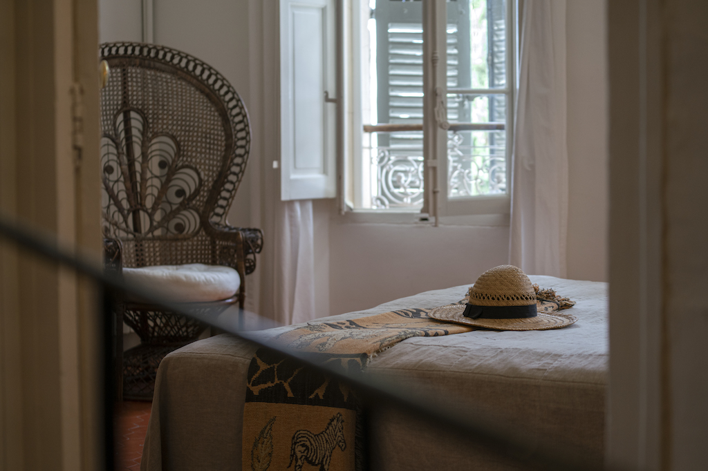 Alle soveværelser er indrettet med lyse og naturfarvet hør.