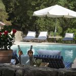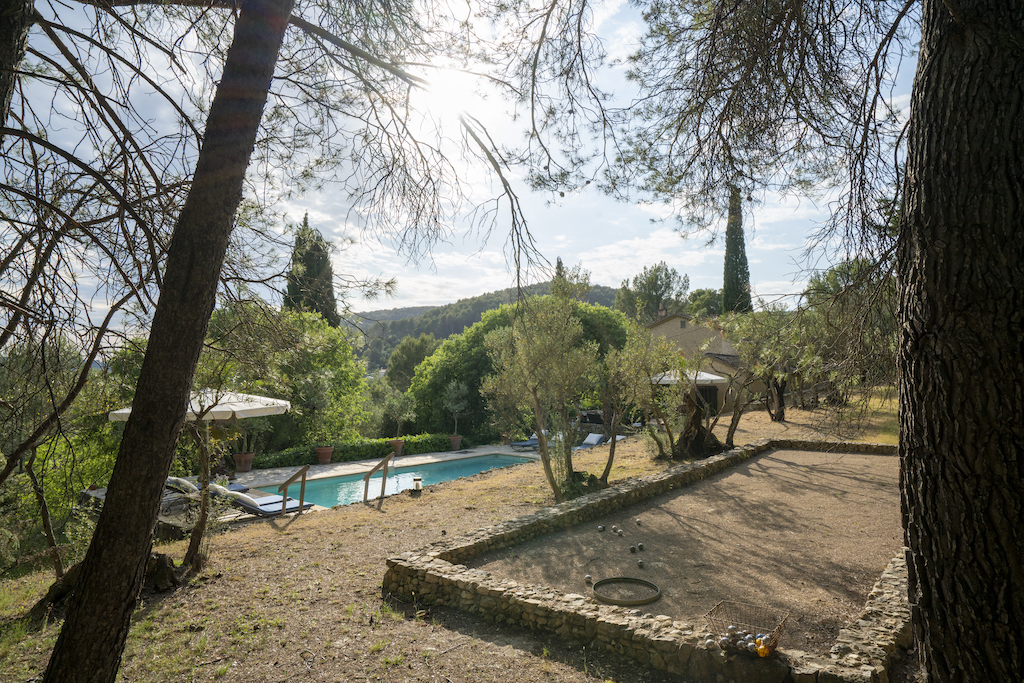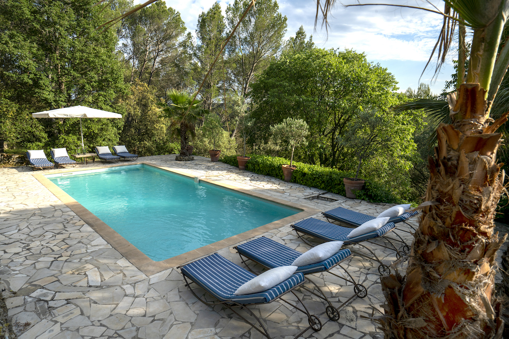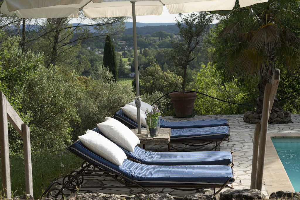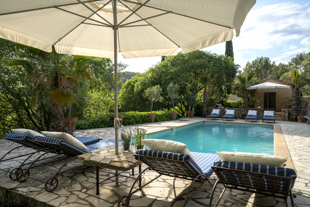 Sydvest vendt pool med sol hele dagen. Der er uhindret udsigt til dalen.